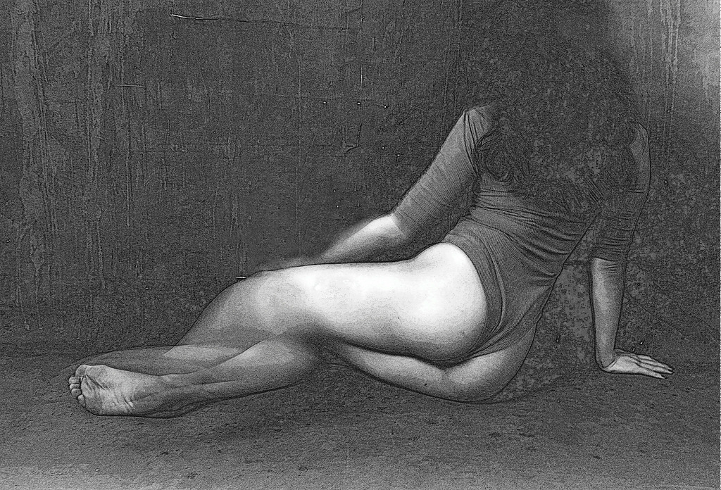原画がブレているだけに、ちょっと工夫した編集が必要になる。 ブレを面白く見せるには、ブレてない部分の輪郭をより強くすると面白い。 また、モデルには、腰を動かさずに顔だけを振ってみるとか・・ブレる部分とそうでない部分のコントラスで画面を構成するようにするとよい。