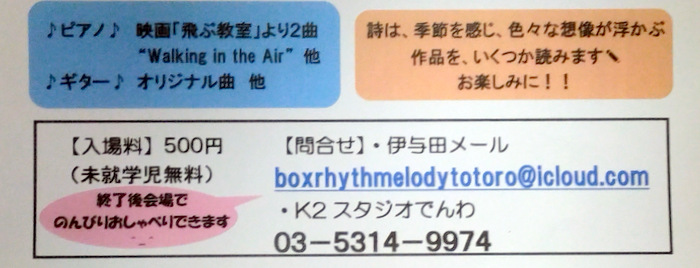 会場:K2 スタジオ (K2ビル B1F)仙川駅徒歩2分