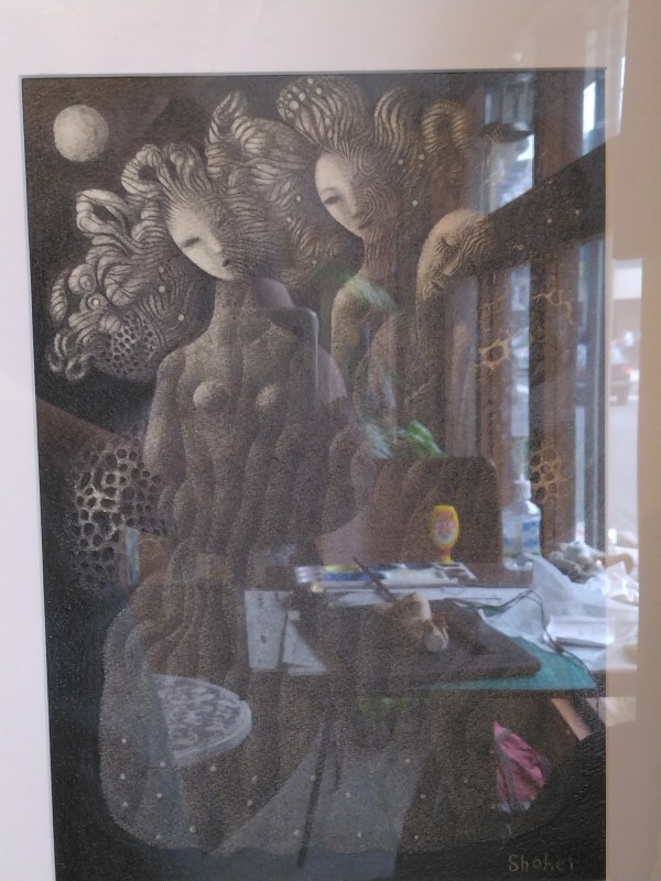 額のガラスに反射した室内が写り込んだ。。