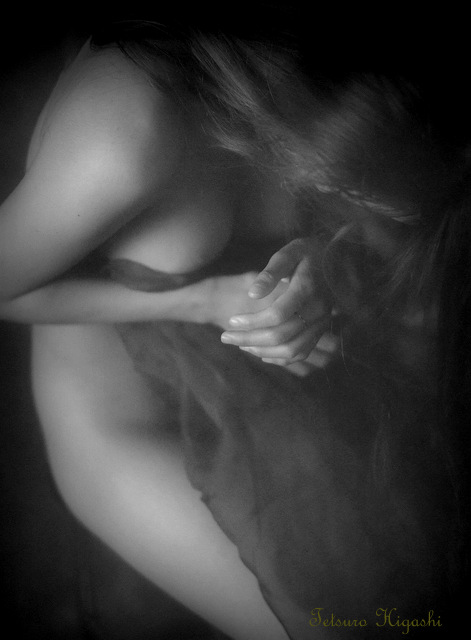 撮影において、モデルのポージングを止めることはほとんどありません。それは、ポーズを指示して体を固定してしまうと、瞬間的にモデルの体が硬直し、緊張が緩んでしまうためです。この緊張が緩んだ状態でシャッターを切ると、どうしても写真が「死んだ」ものに感じられてしまうのです。生き生きとした自然な動きがなくなり、生命感が失われたような写真になってしまう。だからこそ、私は撮影の際にポーズを止めることは避け、モデルが自由に動くままに任せます。