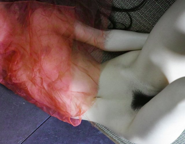 These kinds of photos are what you see with your senses, and in that sense, people who don’t have your senses may not be able to understand them. I used thin transparent fabric. Only the red color shines, and it looks like monochrome photo image with only red left.