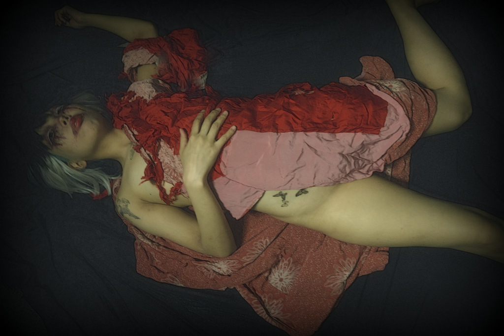以前にも書いたが、ここのモデルは眼から血が吹く出しているようなメイクで家からスタジオまでやって来た。 家を出る前に、その顔を創りあげてきたことになる。 そして、帰りもそのメイクのまま帰って行った。