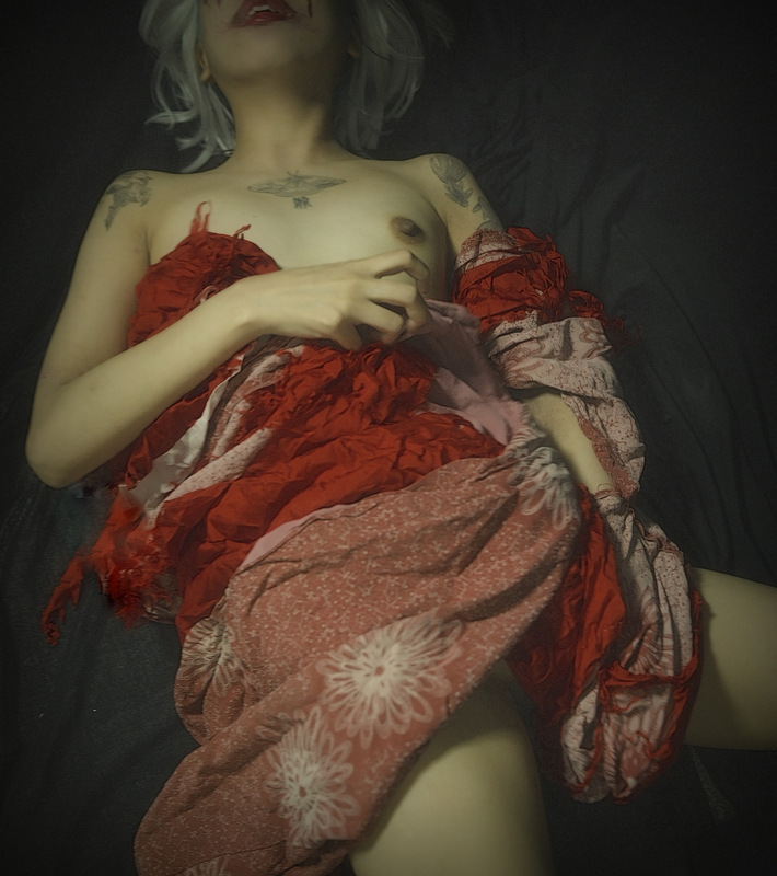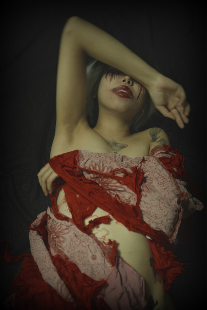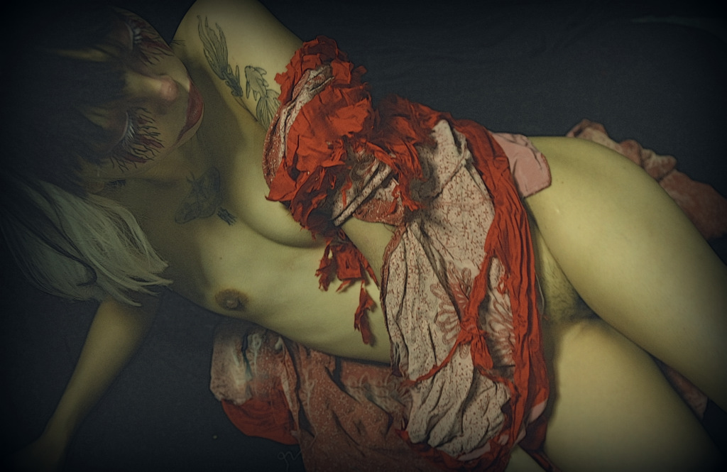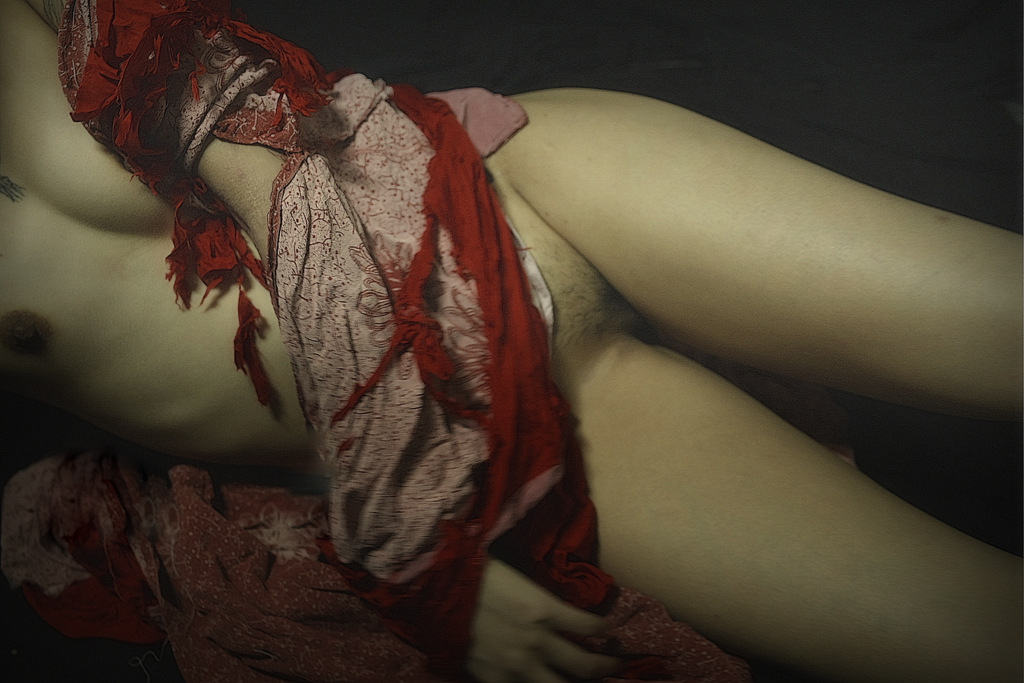 モデルの気迫と心意気は見ての通りだが、写真家の”美に対するこだわり”も同時に見えるだろうか。 肉体の外側だけでなく、”内臓”まで撮りに行ってるような気がする。 ここに見るような”異常な体験”は、このモデルとは共有出来ててるような気がする。